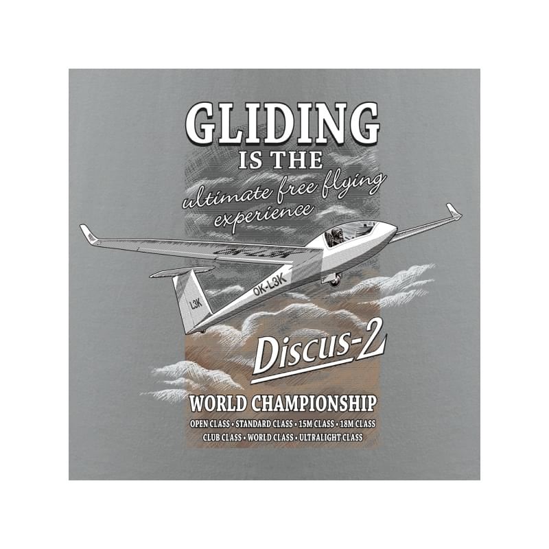 No lover of the wind whistling in the wings of the glider can miss this T-shirt with the glider on the front. Those unforgettable moments when you let the wind drift waiting for thermals. T-shirt with a sailplane DISCUS-2. Fly in this elegant sailplane with 15 meter wingspan from Germany. Flying never felt better than in DISCUS-2.