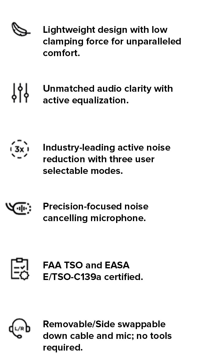 The A30 is FAA TSO and EASA E/TSO-C139a certified. Its lightweight design has passed 145 separate tests by the Bose engineering and quality assurance team to ensure endurance in even the toughest conditions.