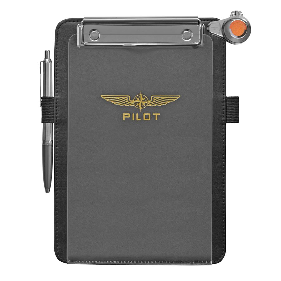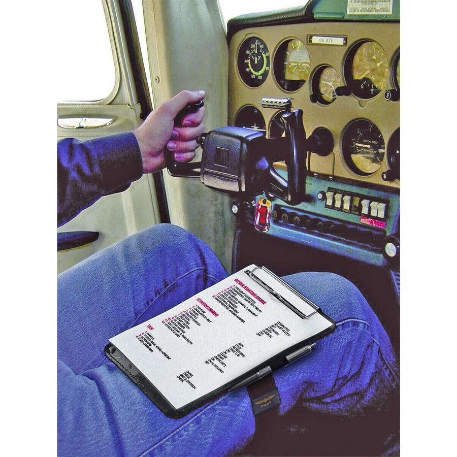 This elegant and high quality A5 kneeboard is made ofeco-friendly leather. It also offers you a wide Velcro strap with anti-slip pads for stability, holding clip and elastic penholders and socket for a stop watch from the PILOT CONTROLLER® KIT. On the back there is also a place for a spare pen.The Rookie is the perfect kneeboard for students and offers an excellent price-performance ratio.