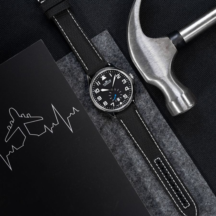 The Pilot Classic series is a whole new edition in the section of pilots watches whose case is based on the early designs of the Fortis years. With thin elegant cases and Swiss automatic movements of the highest quality as well as special constructions like the Dubois-Depraz movement in the chronograph as well as historical design elements, you get the perfect balance between a cockpit and the Gala-Dinner. The distinctive triangular shapes are the core elements of classic aviator watch and are coated with white Superluminova which glows green in the dark. This modern yet heritage aviator-feeling style exudes perfection in all aspects. The perfect readability makes watches of this line a perfect companion. In particular, the new leather performance straps add a sporty elegance to the watch. The spectrum ranges from the clear 902.20.41 Pilot Classic Date to an elegant variant with a small second (901.20.41) to the masterpiece - the 904.21.41 Pilot Classic Chronograph. A distinctive highlight is the second hand in bright blue that comes on each model.