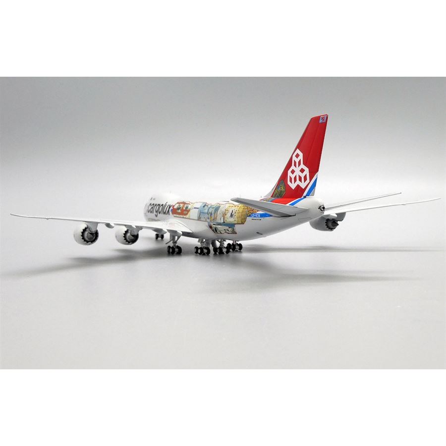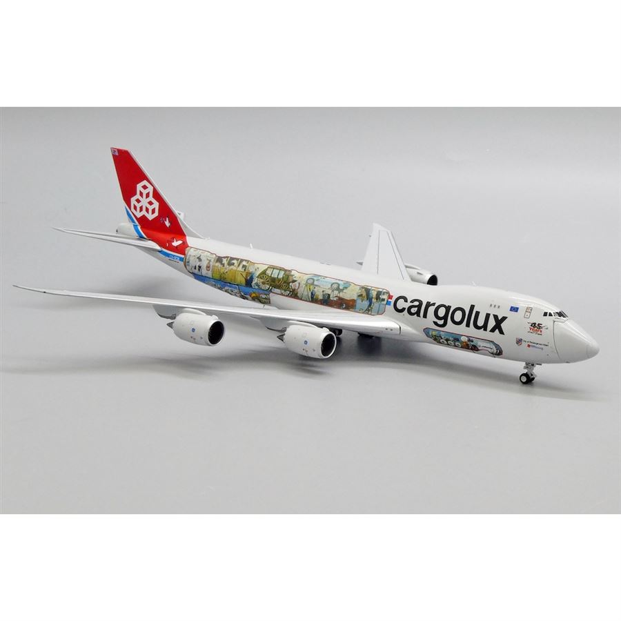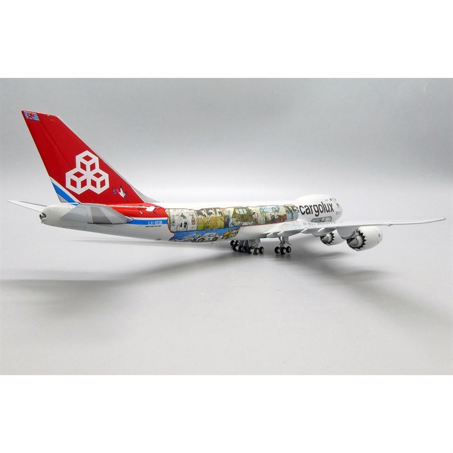 Metal model of airliner Boeing B747-8R7F designed in Cargolux "Cutaway" colours, named "City of Redange-sur-Attert" and with reg. LX-VCM.