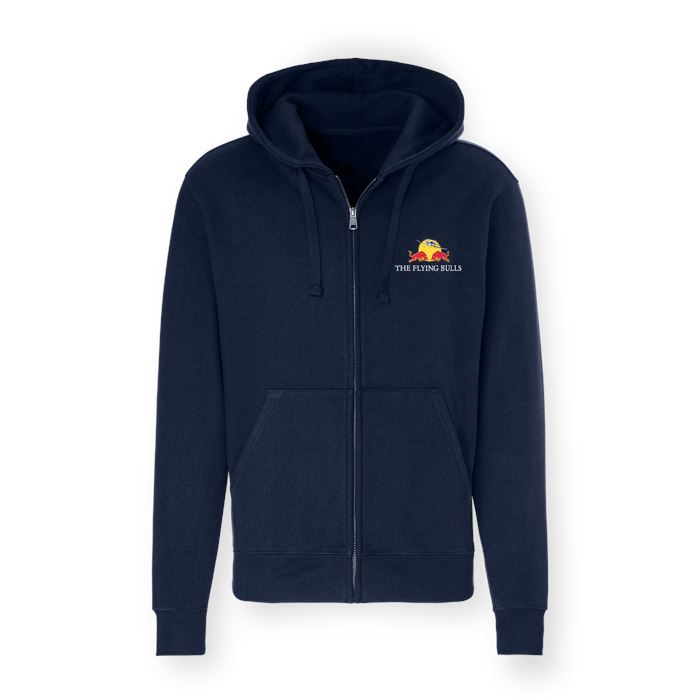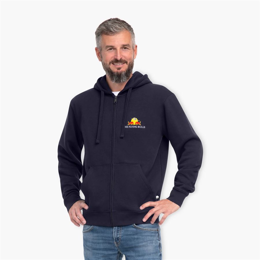 The Flying Bulls Zip Hoodie with colour logo on the chest. Unisex size. From Red Bull.Material: 80% Cotton, 20% Polyester