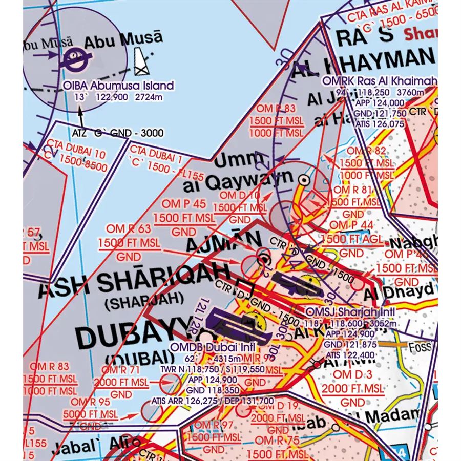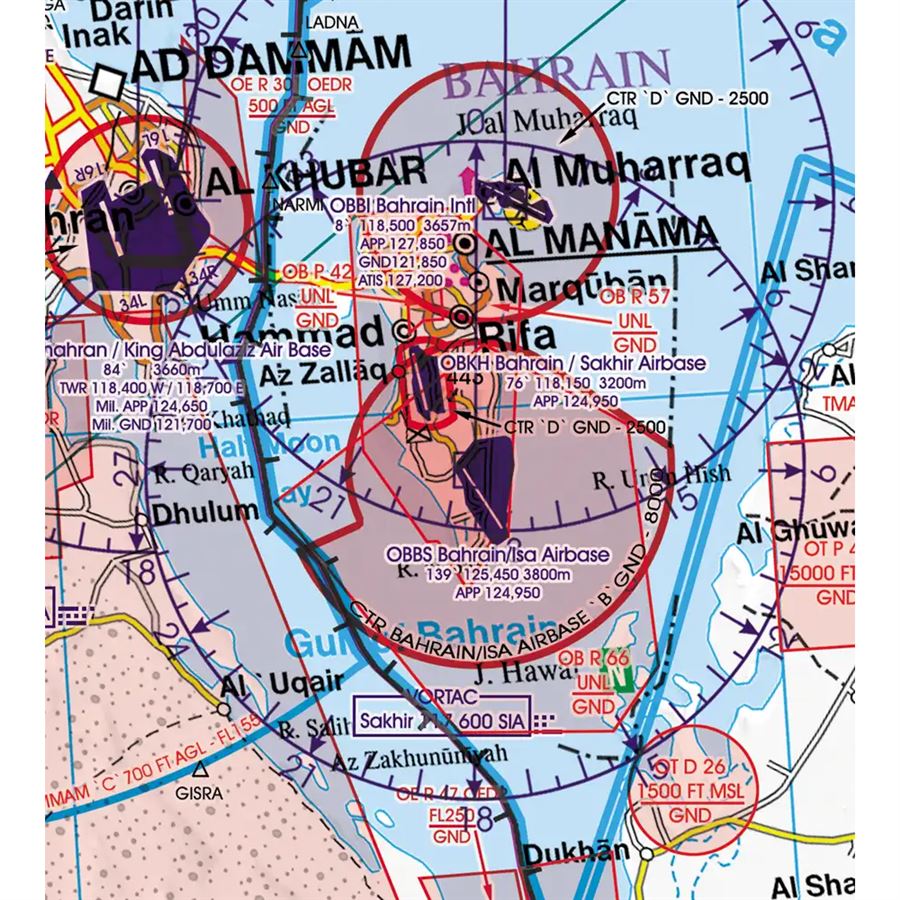 United Arab Emirates – Qatar – Bahrain VFR Aeronautical Chart – ICAO Chart 1000k