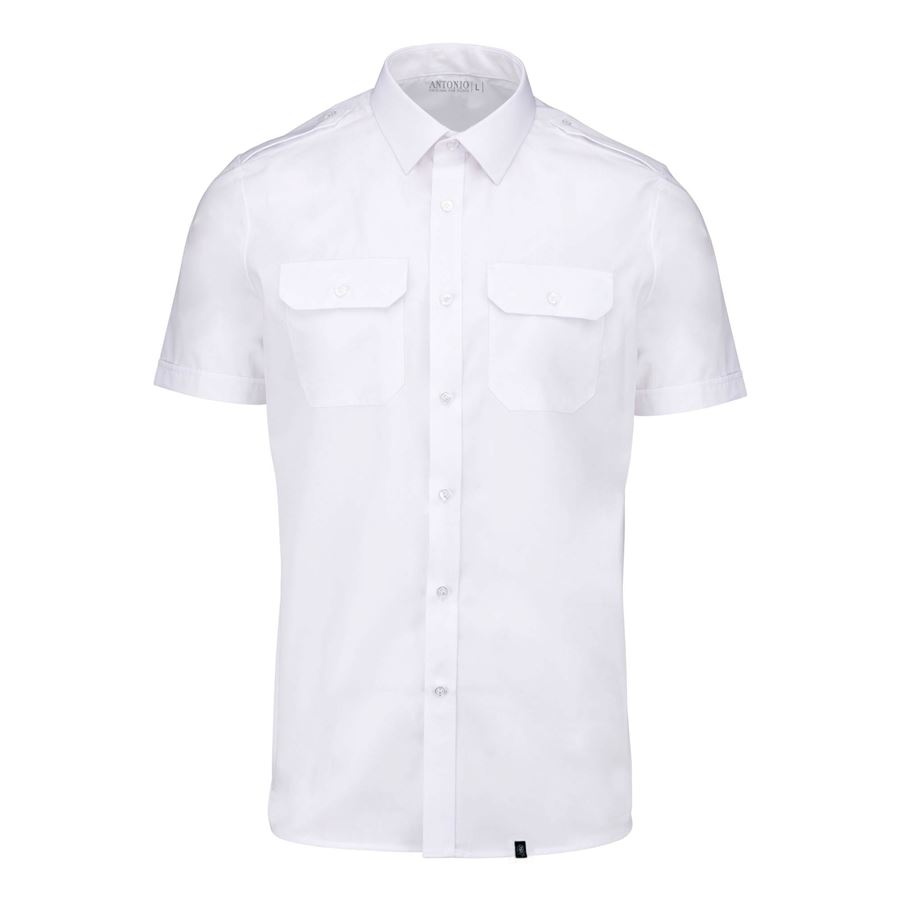 Klasická pilotní košile s krátkým rukávem a nárameníky. Košile má dvě kapsy na prsou. Levá kapsa je opatřena speciálním úpravou pro nošení psací potřeby.Materiál: 65% polyester / 35% bavlna (poplin)