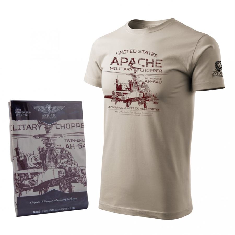 Pánské triko ANTONIO s bojovým vrtulníkem APACHE AH-64D v provedení s krátkým rukávem je vyrobeno z bavlněného materiálu, který odvádí pryč bezpečně pot a navíc působí stále příjemně na těle. Tento produkt je dárkově zabalen.