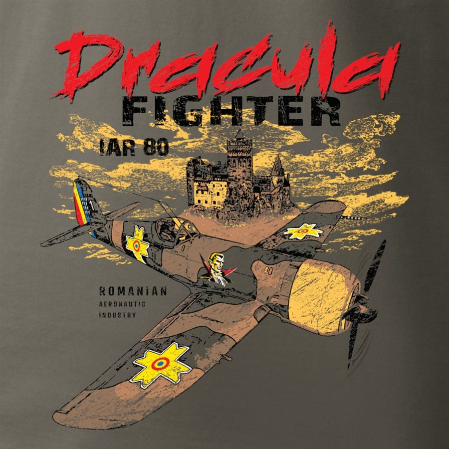Pánské triko "Dracula Fighter" značky ANTONIO s motivem letounu IAR 80. Trika ANTONIO jsou vyrobená z kvalitního bavlněného materiálu, který odvádí pryč bezpečně pot a navíc působí stále příjemně na těle. Tento produkt je balen v designové krabičce.