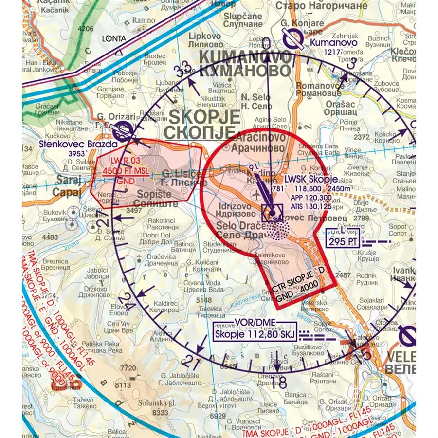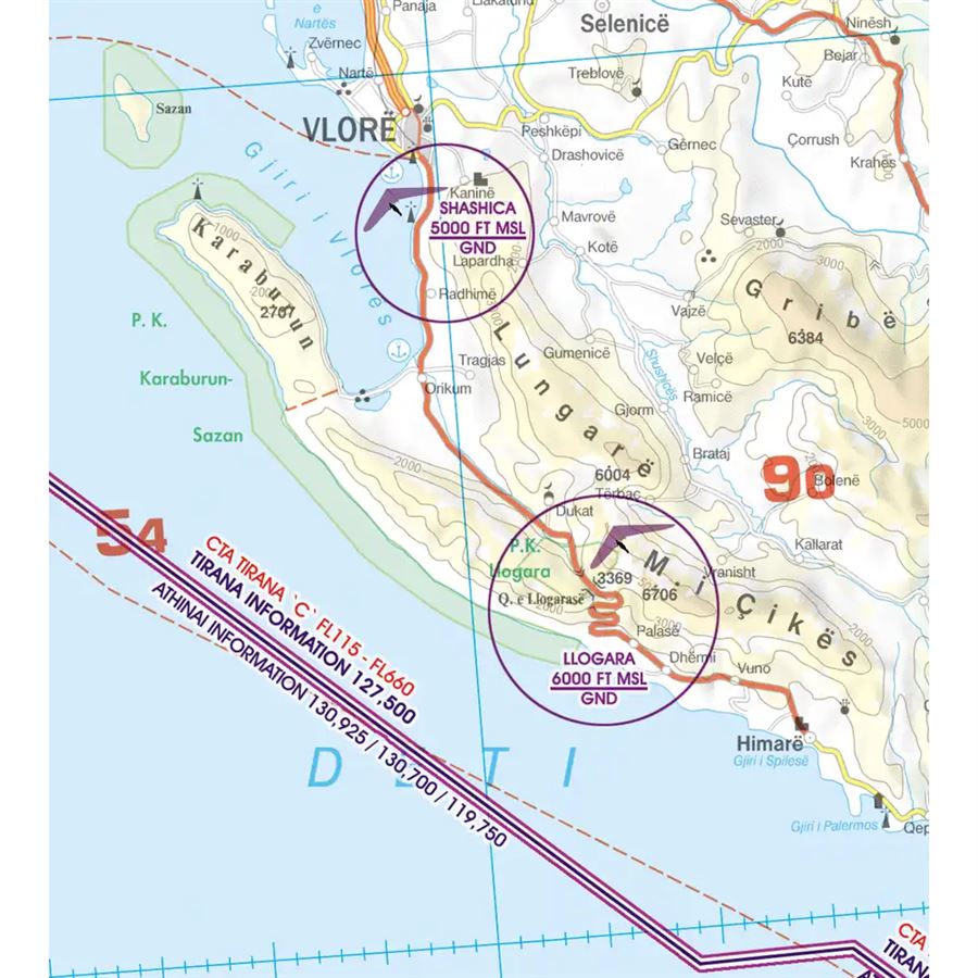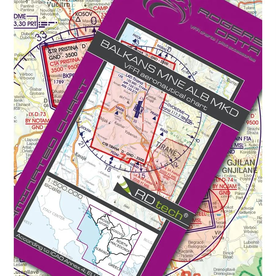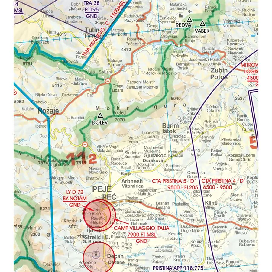 Letecká VFR mapa Balkán – ICAO mapa v měřítku 1:500 000Zahrnuje oblasti: Černá Hora, Albánie, Severní Makedonie