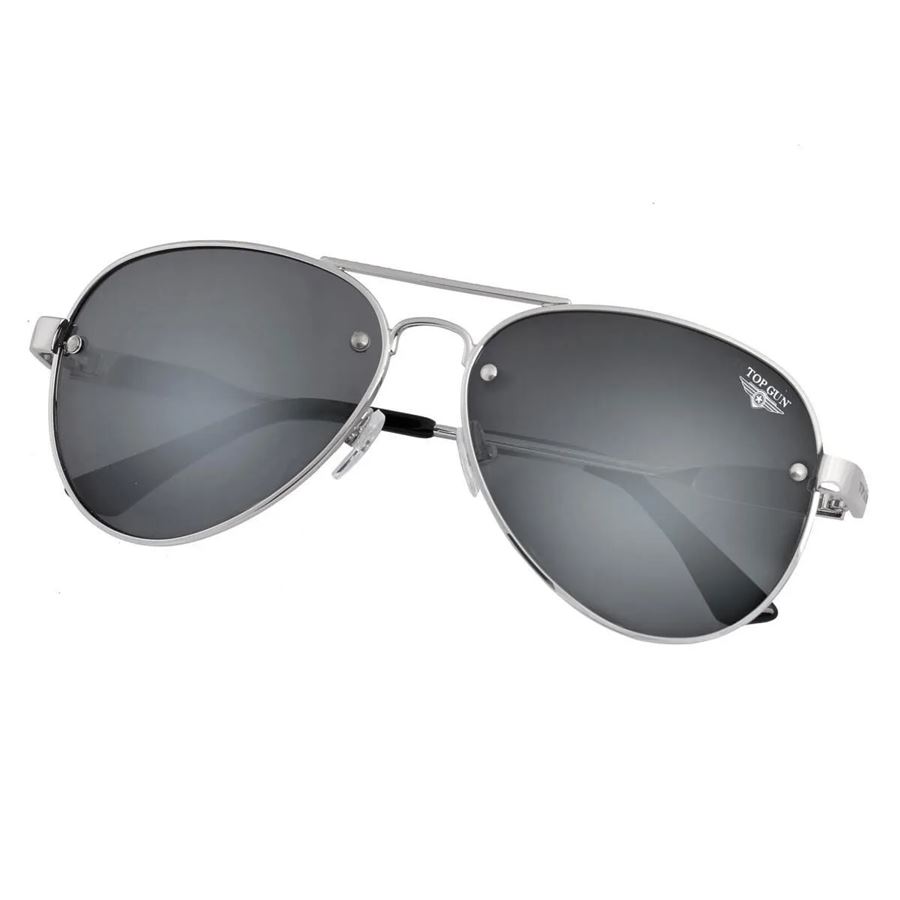 Sluneční brýle Top Gun nabízejí 100% UV 400 ochranu. Tento designový kousek se stříbrnými rámy s odolnými nánosníky a polarizovanými zrcadlovými čočkami, nesmí chybět žádnému nadšenci elitní jednotky amerického letectva Top Gun. Sluneční brýle jsou dodávány v elegantním ochranném černém pouzdře, které obsahuje čistící hadřík z mikrovlákna. Oficiálně licencovaný produkt.