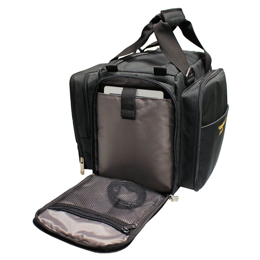 Taška je vyrobena z vysoce kvalitního a lehkého nylonového vlákna, je plně polstrovaná a má vyjímatelné zpevněné dno. Hlavní prostor lze rozdělit různými způsoby, aby vyhovoval všem vašim potřebám. Spodní část tašky je opatřena plastovými části k ochraně proti odření. Na přední straně je velká kapsa s obousměrným-zipem, umožňuje rychlý přístup k důležitým věcem jako jsou např. karty, mapy, letový plán, tužky, atd. Na zadní straně jsou dvě vnější kapsy, jedna pro GPS, ICOM, baterku, nebo jiná schémata, druhá pak pro sluchátka. Na bočních stranách taškou jsou další kapsy. Jedna je určená pro tablet a druhá obsahuje 3 síťované kapsy, takže si můžete najít všechny své věci velmi rychle. Součástí je také pohodlný popruh přes rameno s polstrováním a proti skluzem.