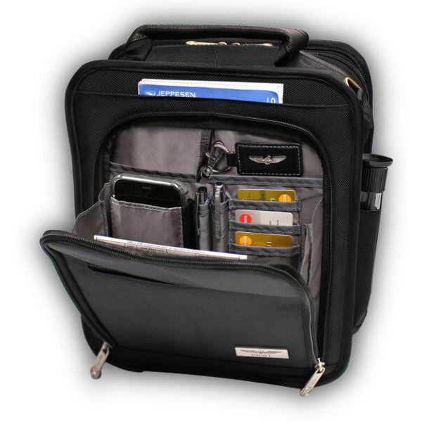 Vzhledem k tomu, že elektronické přístroje, jako jsou tablety a chytré telefony, se staly nepostradatelnými ve světě letectví je taška PILOT EFB navržena přesně pro tyto požadavky. S mnoha kapsami je krásně tvarovaná, víceúčelová jednoduše ideální pro každodenní použití. Taška je vyrobena z odolného 1680 nylonu, je dobře polstrovaná a má robustní ochranný rám včetně popruhu s kovovými očkama a měkkou podložkou. V hlavní přihrádce máte prostor pro sluchátka, nákoleník apod. A další prostor pro tablety umožňující rychlý přístup, aniž byste museli otevřít hlavní přihrádku. Další kapsa na zip je určena pro drobnosti. Dvě boční kapsy jsou ideální pro pera, testr paliva, svítilnu a další různé věci. Na přední straně máte kapsičku pro drobnosti, kapsy pro vkládání pera a mobilní telefon, držák na klíče, sloty pro kreditní karty a síťovanou část pro nabíjecí kabely. V zadní části tašky je kapsa na mapy nebo časopisy a popruh na vozík.