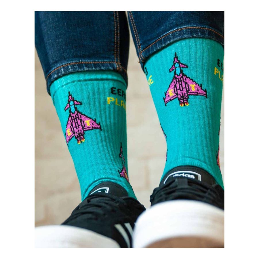 Někdy by se hodilo mít v nohách raketový pohon, přidej na výkonu s Eurofighter Typhoon ponožkami od Eeroplane. Tyto ponožky jsou oblíbené nejen u pilotů. Navrženo a vyrobeno v České republice. Etiketa vyrobena z recyklovaného papíru.