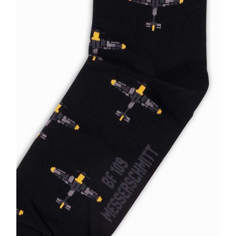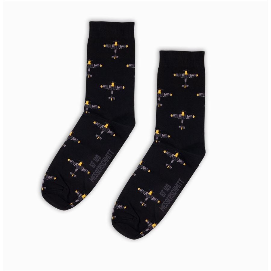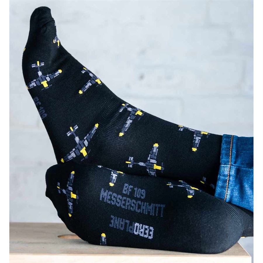 Ponožky s letadlem z 2. světové války. Legendární Messerschmitt Bf109 ponožky jsou krásným dárkem pro nadšence do válečných letadel. Eeroplane ponožky jsou oblíbené nejen u pilotů. Navrženo a vyrobeno v České republice. Etiketa vyrobena z recyklovaného papíru.