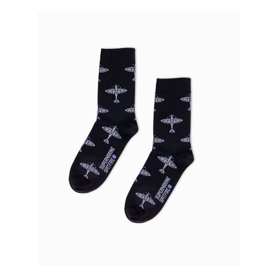 Oblíbené ponožky s letadlem z 2. světové války - Supermarine Spitfire. Eeroplane ponožky jsou oblíbené nejen u pilotů. Jsou obzvláště pohodlné a mají zesílenou patu pro delší výdrž. Navrženo a vyrobeno v České republice. Etiketa vyrobena z recyklovaného papíru.