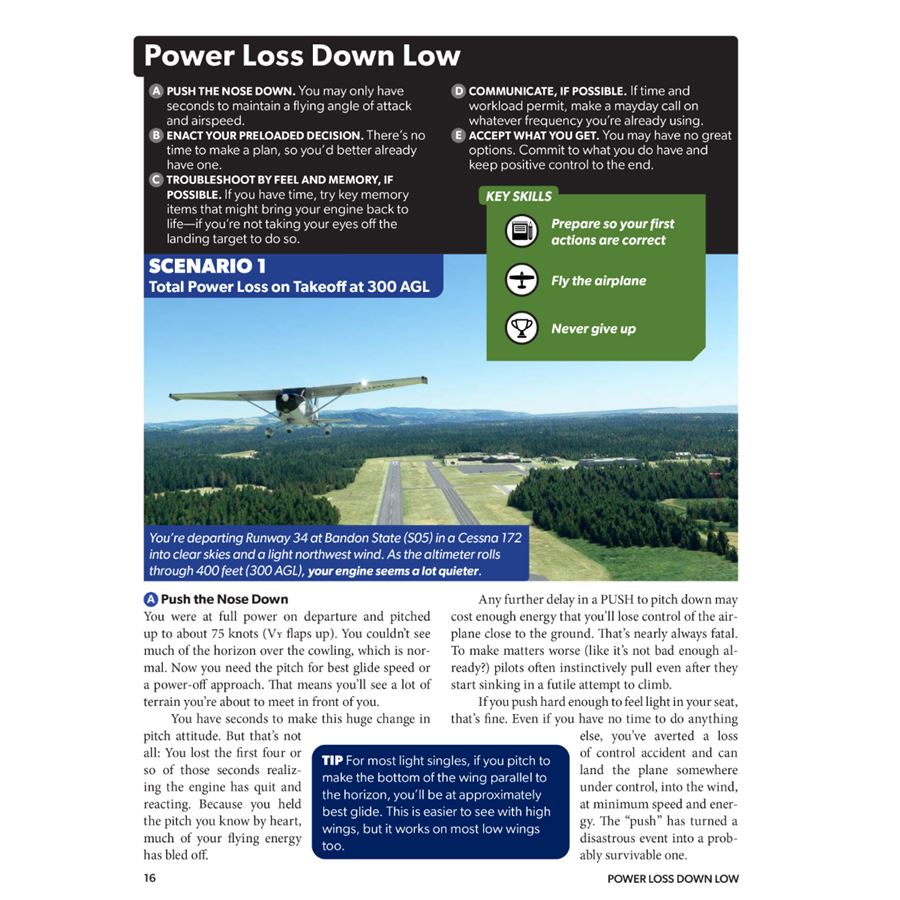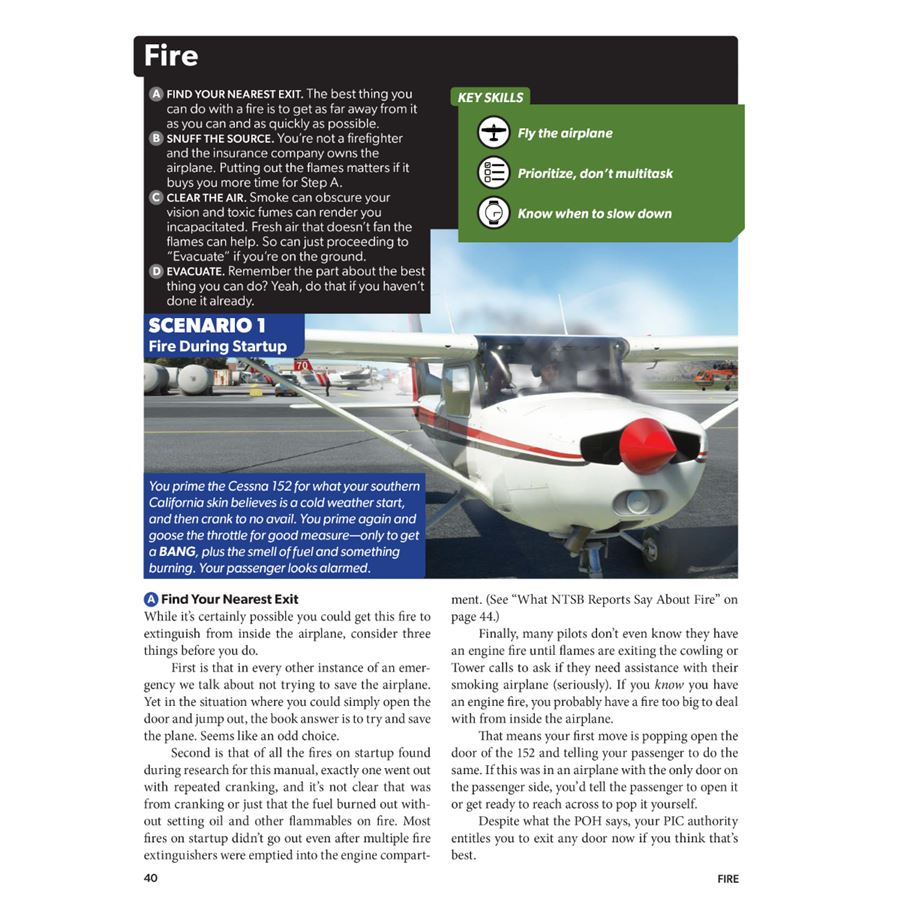 This approach works because successfully resolving an emergency is a process you work through, not purely an exercise in memory recall and action. Memory items, flow patterns and checklists are only parts of the puzzle. You’ll learn the most effective mindset for approaching each type of emergency, no matter what specific actions you need to take (given the airplane you’re flying, your experience, and the exact situation you find yourself in).