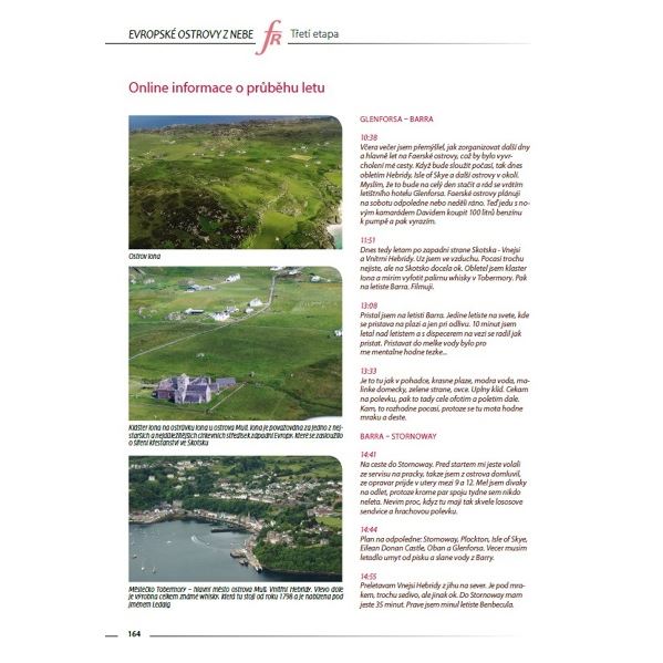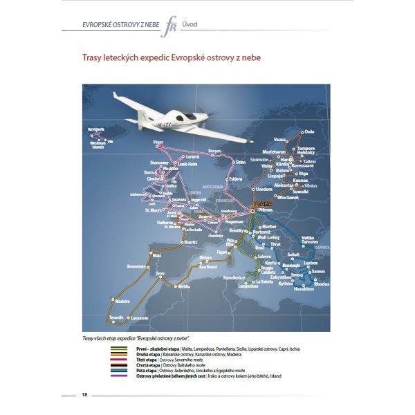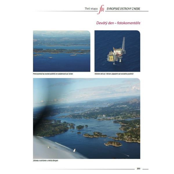 Český letec, publicista a fotograf Jiří Pruša v ní na 472 stranách shromáždil více než tisícovku fotografií evropských ostrovů a pobřeží a prostřednictvím reportáží, vzpomínek, pocitů, map a fotografií mapuje poprvé v historii takto uceleně letecký pohled na evropské pobřeží i ostrovy, sopky i fjordy, majáky, města i letiště.