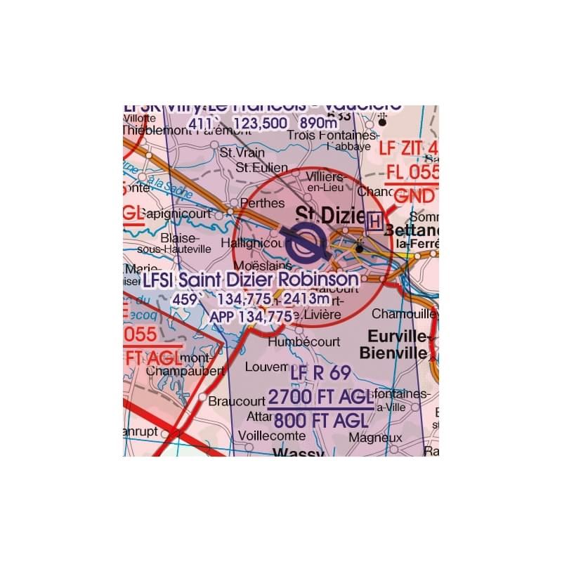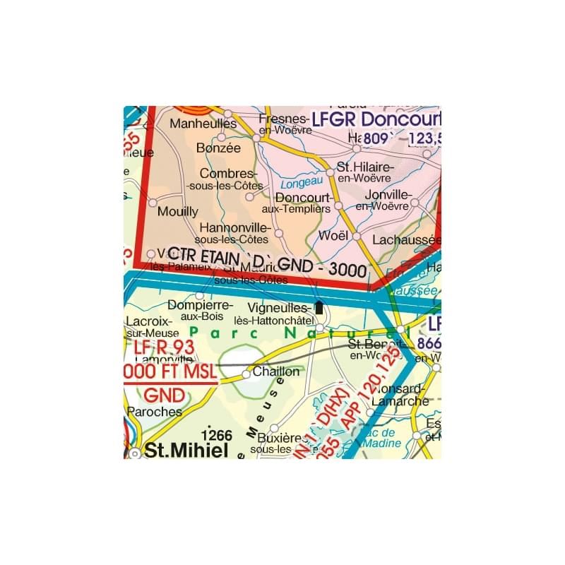 Letecká VFR mapa severovýchodní Francie – ICAO mapa v měřítku 1:500 000