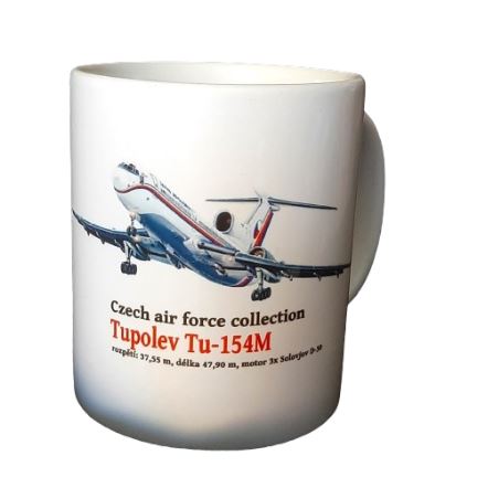 Keramický hrnek s motivem dopravného letounu Tupolev Tu-154M Czech Air Force collection, letecký hrnek. Hrnek lze umývat v myčce nádobí.