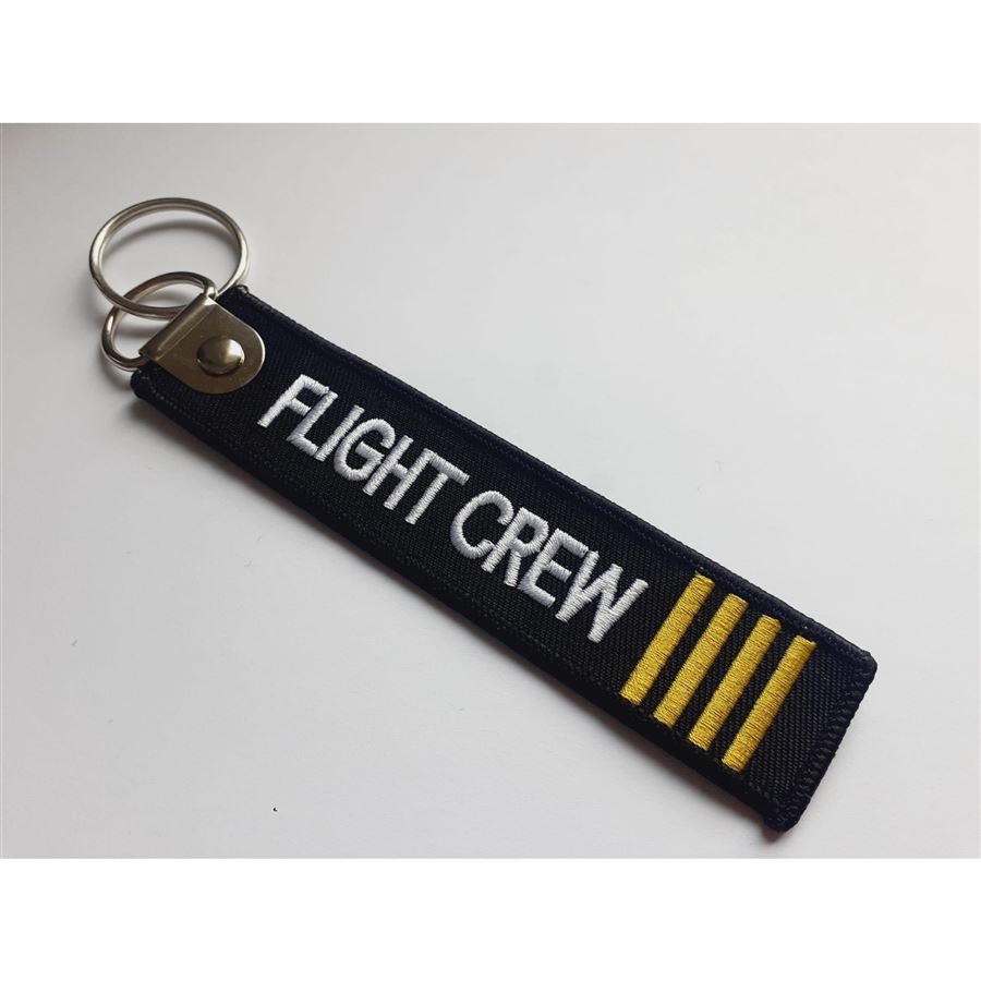 Stylové klíčenky s vyšívaným nápisem "FLIGHT CREW" a 4 pruhy hodnosti po obou stranách. Nové a velmi populární klíčenky. Dodává se se split kroužkem.Velikost:130 mm dlouhá