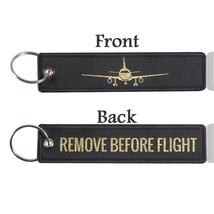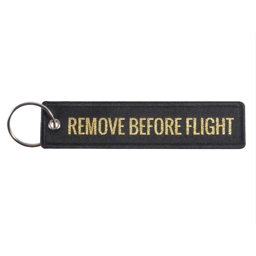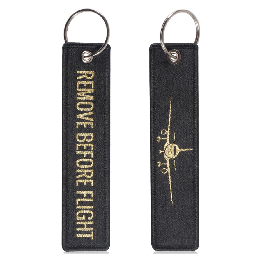 Klíčenka je vyrobena ze 100% bavlny. Kvalitně sešitá se zlatým nápisem 'REMOVE BEFORE FLIGHT' na jedné straně a s letadlem na druhé straně. Nové a velmi populární klíčenky. Dodává se s split kroužkem.Velikost:130 mm dlouhá