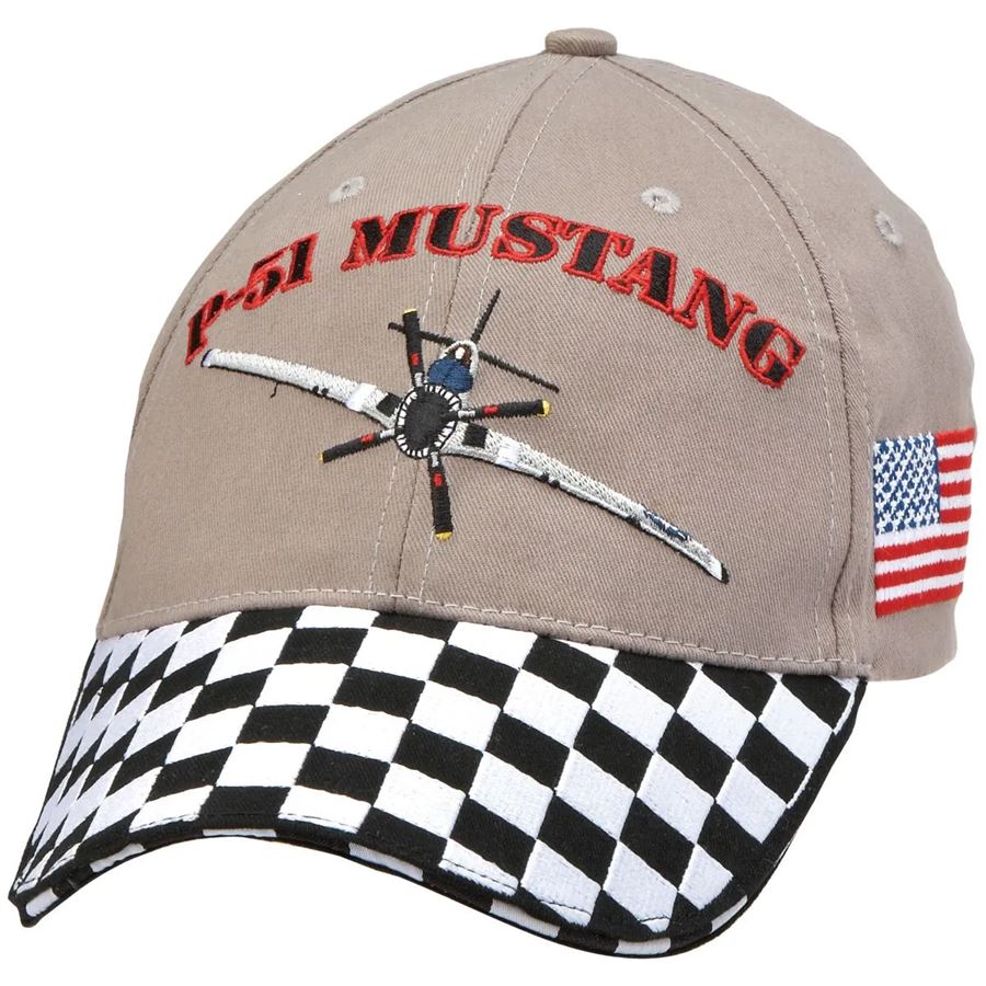 Kvalitní kšiltovka P-51 Mustang vzdává hold oblíbenému americkému válečnému letounu všech dob. Mustang, známý jako Ace Maker™, byl oblíbený jak u pilotů, kteří s nimi létali, tak u pilotů bombardérů, kteří jimi byli chráněni. Kšiltovka se vyznačuje šachovnicovým vzorem krytu motoru populárním během 2. světové války, prošitým podél okraje a vyšívanou siluetou P-51 Mustang vpředu. Americká vlajka na levé straně a klasické logo Army Air Corps na pravé straně s Ace Maker™ na zadní straně dělají z této čepice „povinnost“ pro každého, kdo miluje historické vojenské letectví.