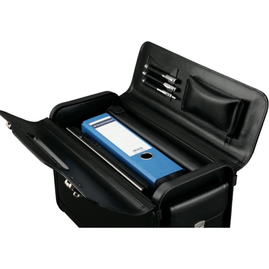 Jednoduchý a praktický kufr v provedení imitace kůže. Vnitřní prostor obsahuje dvě přepážky určené pro dokumenty a více polstrovaná kapsa je pro notebook. Mezi tyto přepážky můžete vložit ještě i celý šanon s dokumenty. Horní překryt kufru je vybaven zavírací kapsou na zip a pouzdrem na tužky a pera. Na boční straně naleznete kapsu na drobnosti uzavíratelnou suchým zipem. Vyznačuje se kvalitním zpracováním a velmi nízkou hmotností. Kufr je vybaven dvojicí zámků s číselníkem.