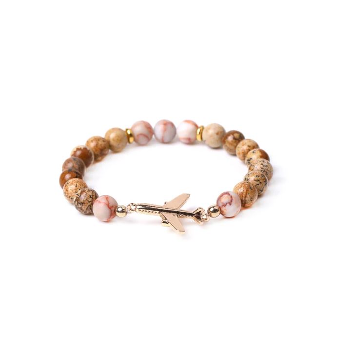 Stylový náramek z různých minerálních kamenů s letadlem. Náramek z minerálních kamenů o průměru cca 8 mm.
