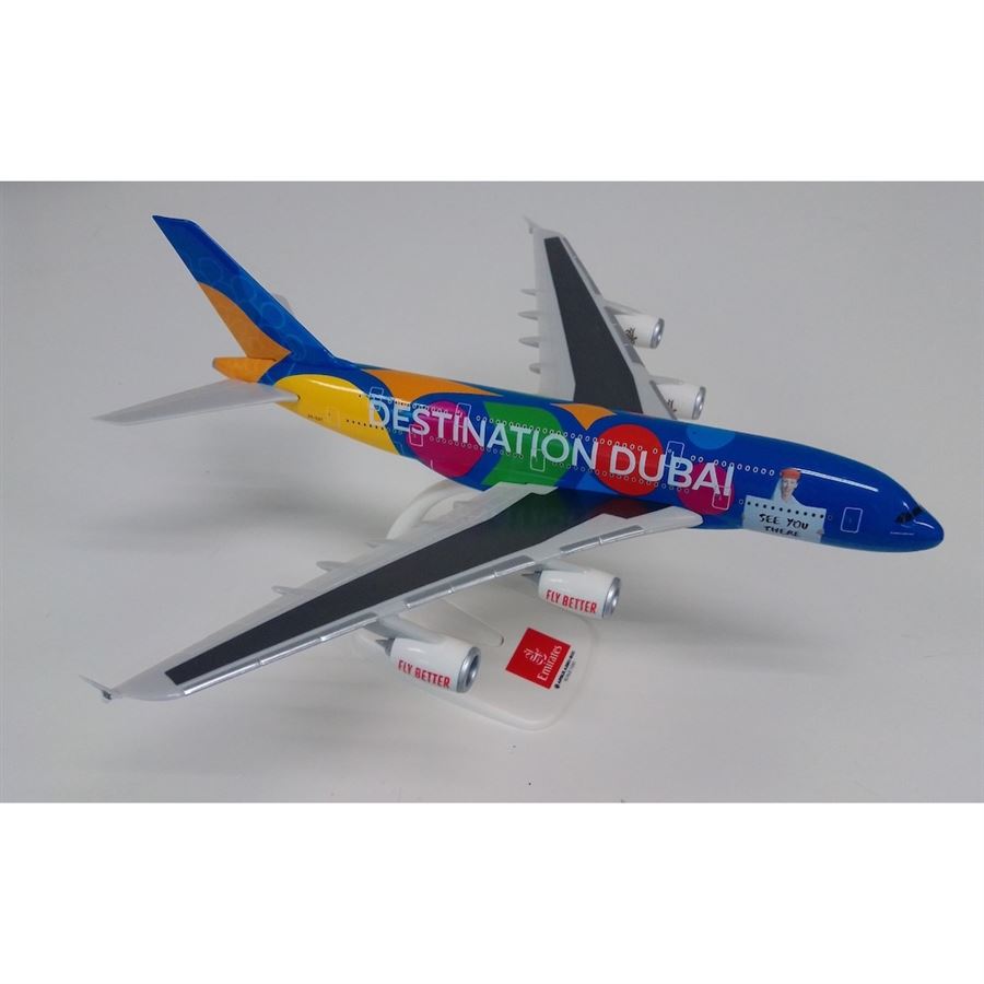 Model největšího dopravního letadla Airbus A380-861 v barvách "Destination Dubai - Be Part Of The Magic" letecké společnosti Emirates a s reg. A6-EOT.