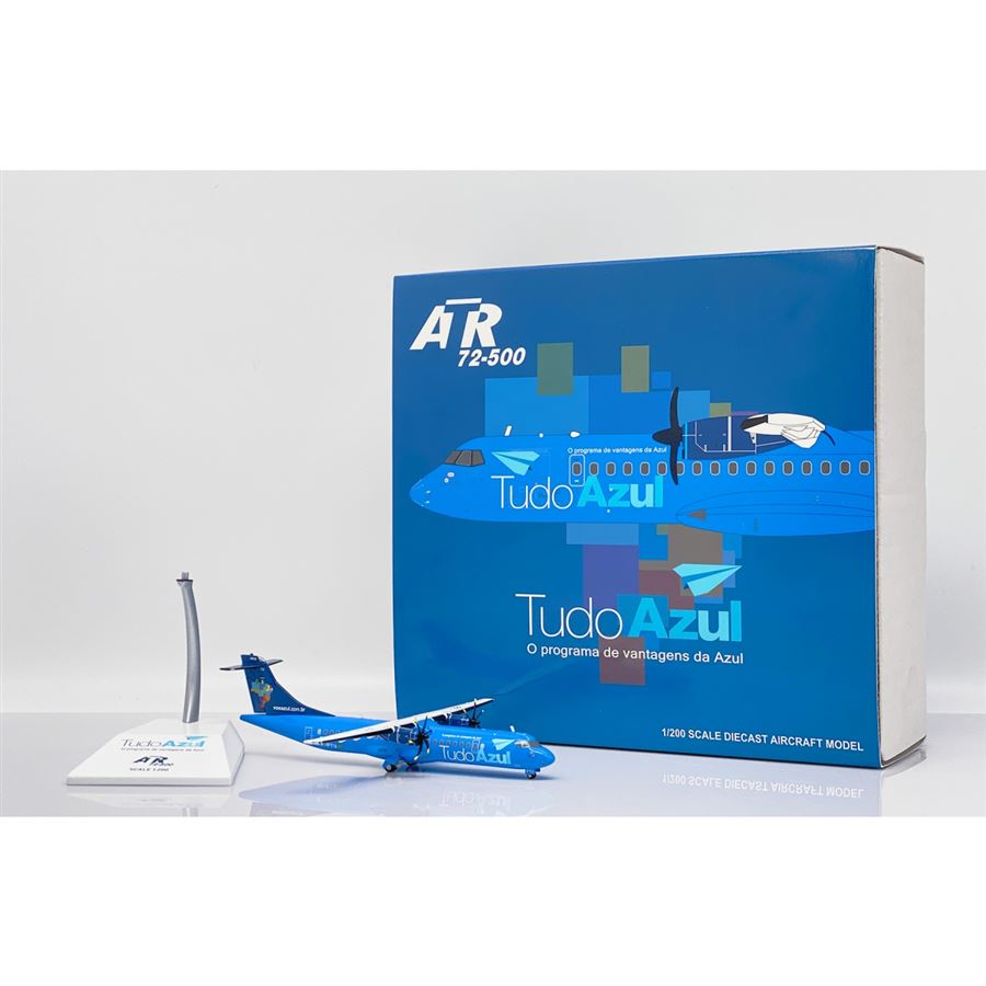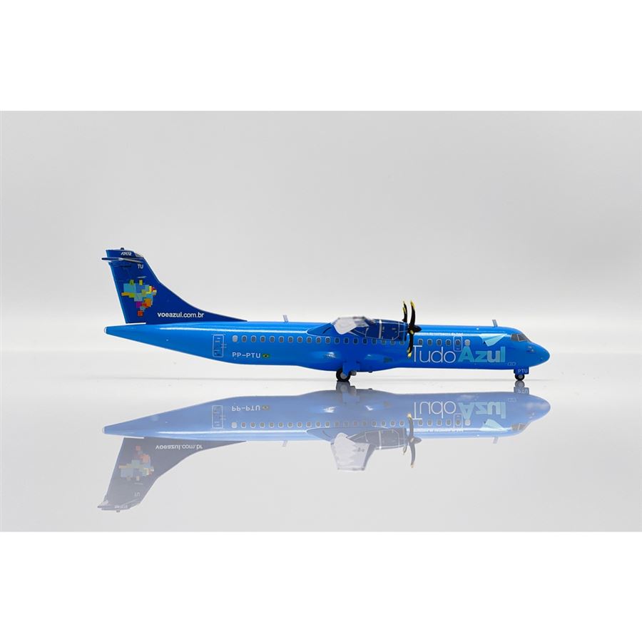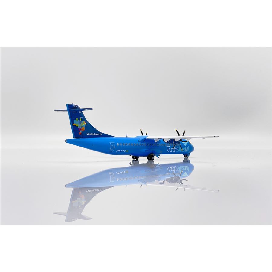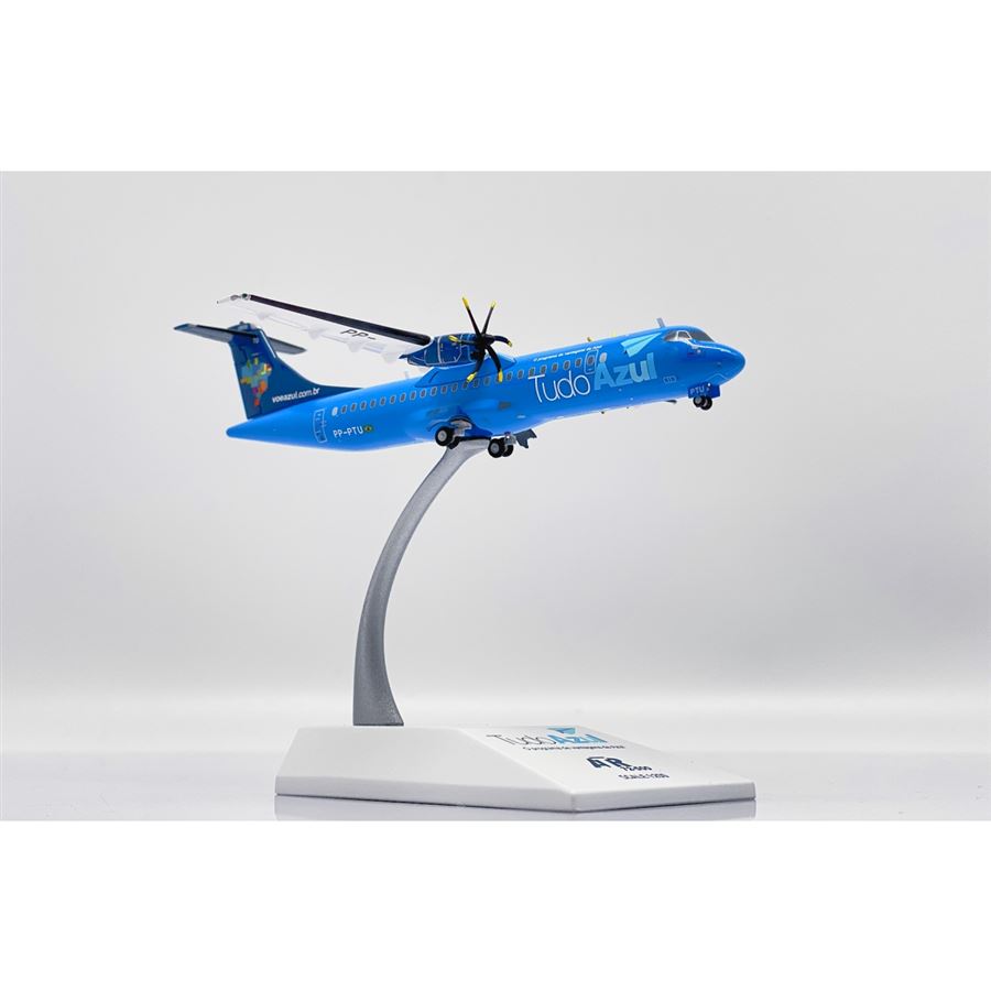 Kovový model dopravního letadla ATR 72-500 (72-212A) v barvách letecké společnosti Azul Linhas Aéreas Brasileiras "Tudo Azul" a s reg. PP-PTU. Model se stojánkem.