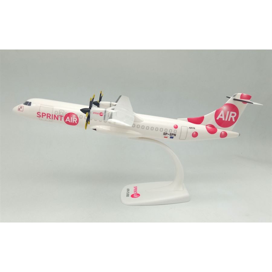 Sběratelský model dopravního letadla ATR 72-500 (72-212A) v barvách letecké společnosti SprintAir a s reg. SP-SPN. Model se stojánkem.