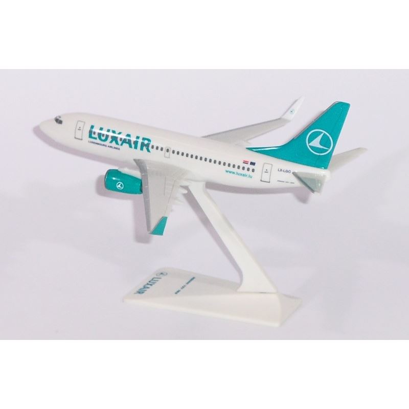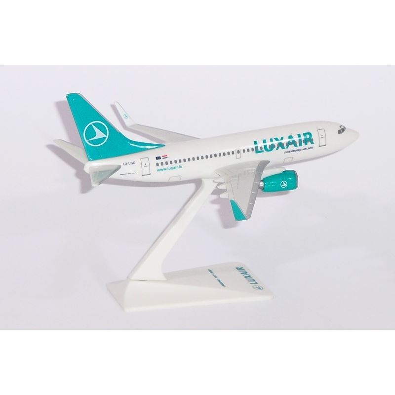 Plastový model dopravního letounu Boeing B737-5C9 v barvách letecké společnosti Luxair. Model je pojmenovaný "Chateau de Clervaux" a má reg. LX-LGO. Plastový model z letecké edice tzv. SnapFit modelů, který se snadno sestaví pouhým zacvaknutím (bez lepidla). Model je dodáván se stojánkem.