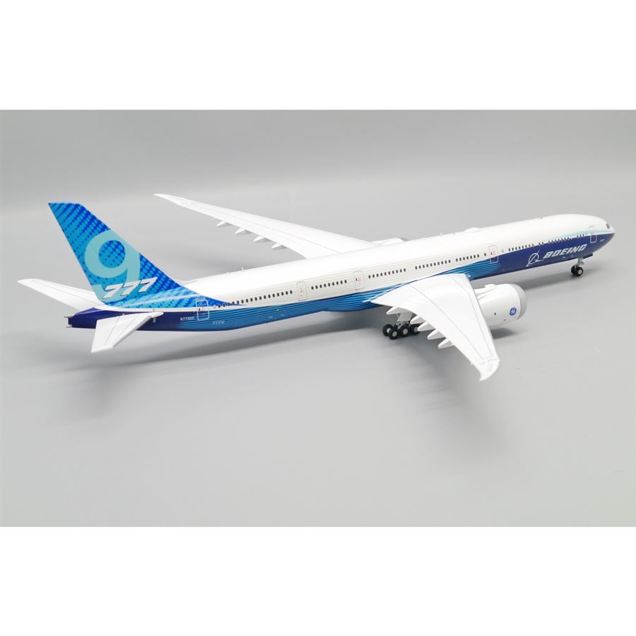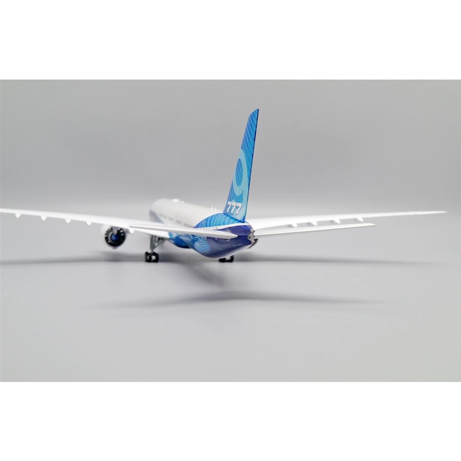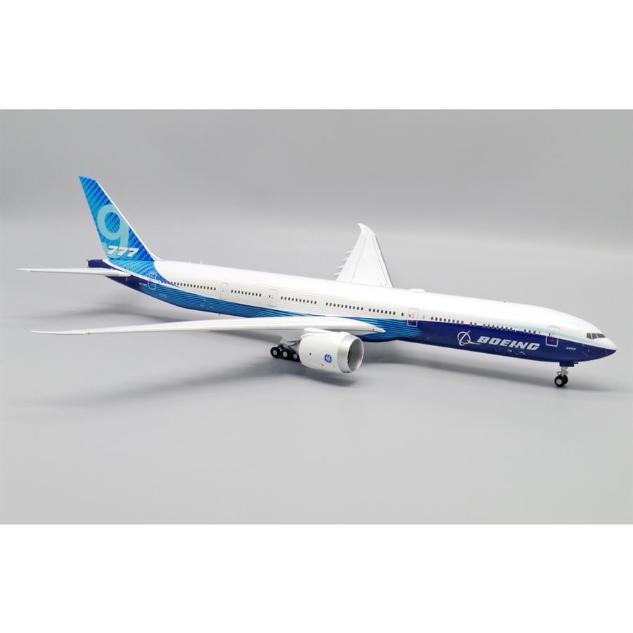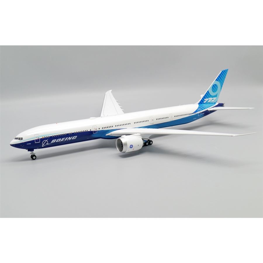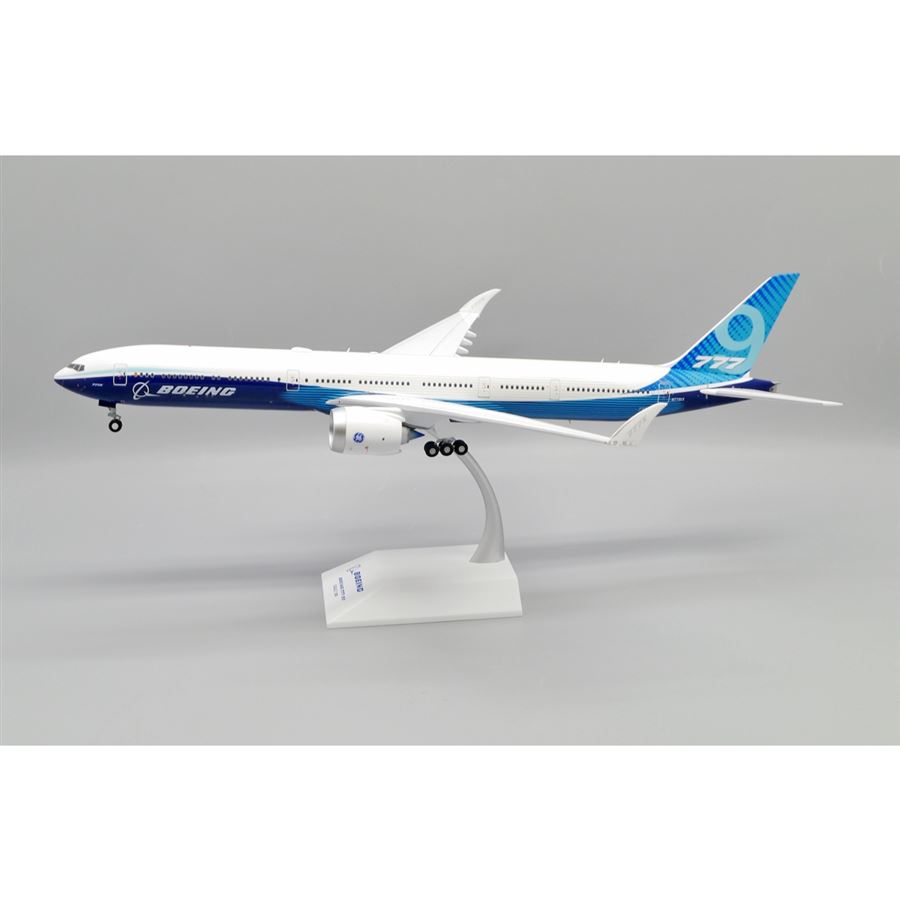 Model dopravního letadla Boeing 777-9 v domácích barvách společnosti Boieng Aircraft a s reg. N779XX. Model se stojánkem.