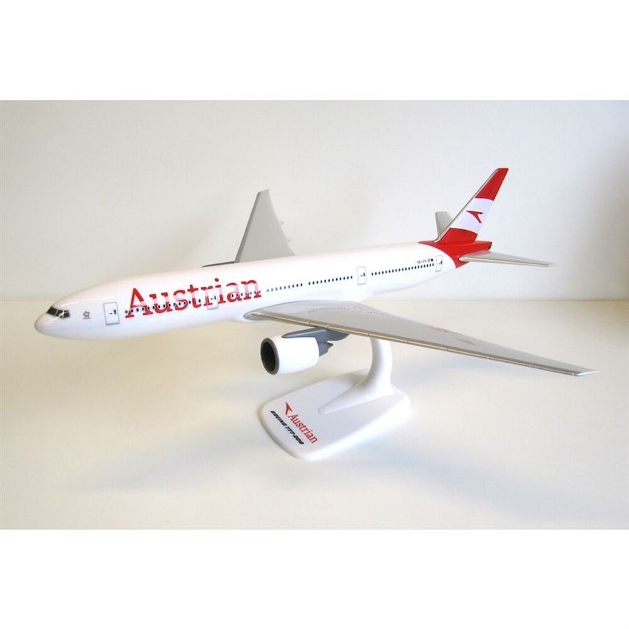 Model dopravního letounu Boeing B777-2Z9ER v barvách letecké společnosti Austrian Airlines z roku 2004, pojmenovaný "Sound of Music" a s reg. OE-LPA. Plastový model z letecké edice tzv. SnapFit modelů, který se snadno sestaví pouhým zacvaknutím (bez lepidla). Model je dodáván se stojánkem.