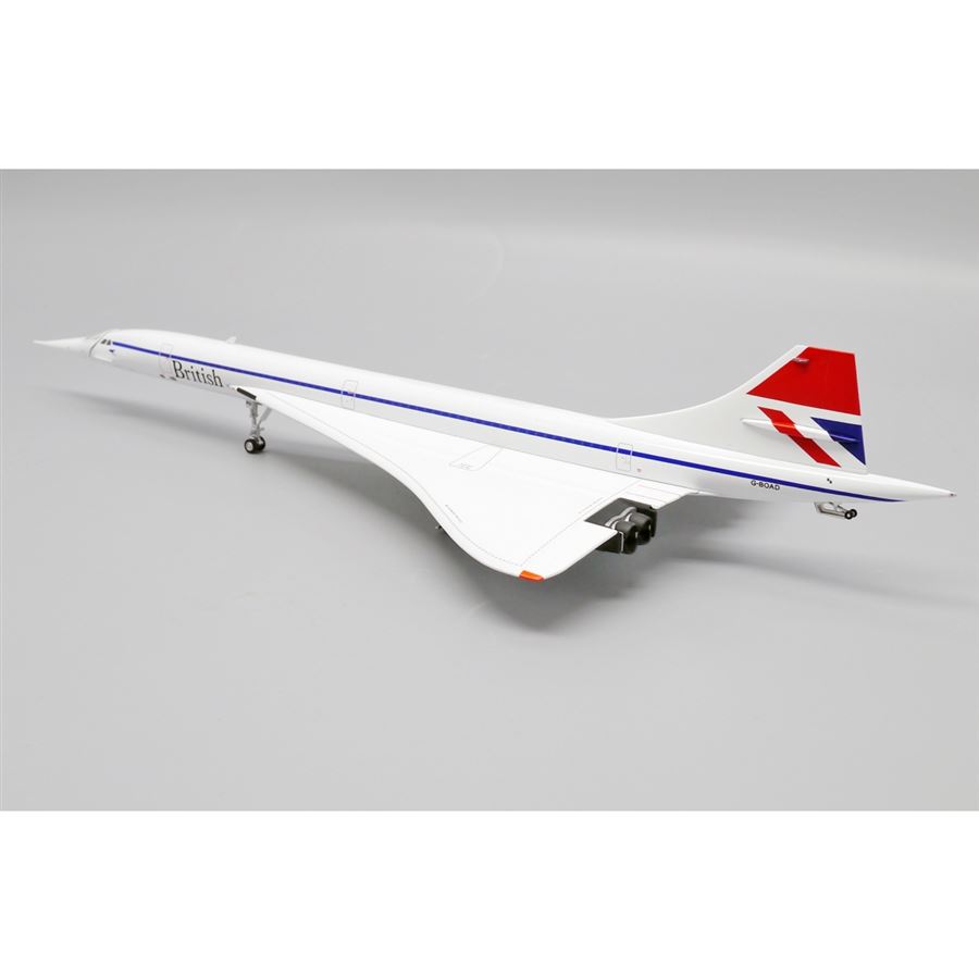 Kovový model dopravního letounu Concorde v barvách letecké společnosti British Airways a s reg. G-BOAD. Model se stojánkem.