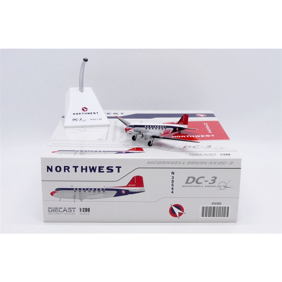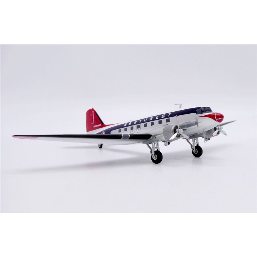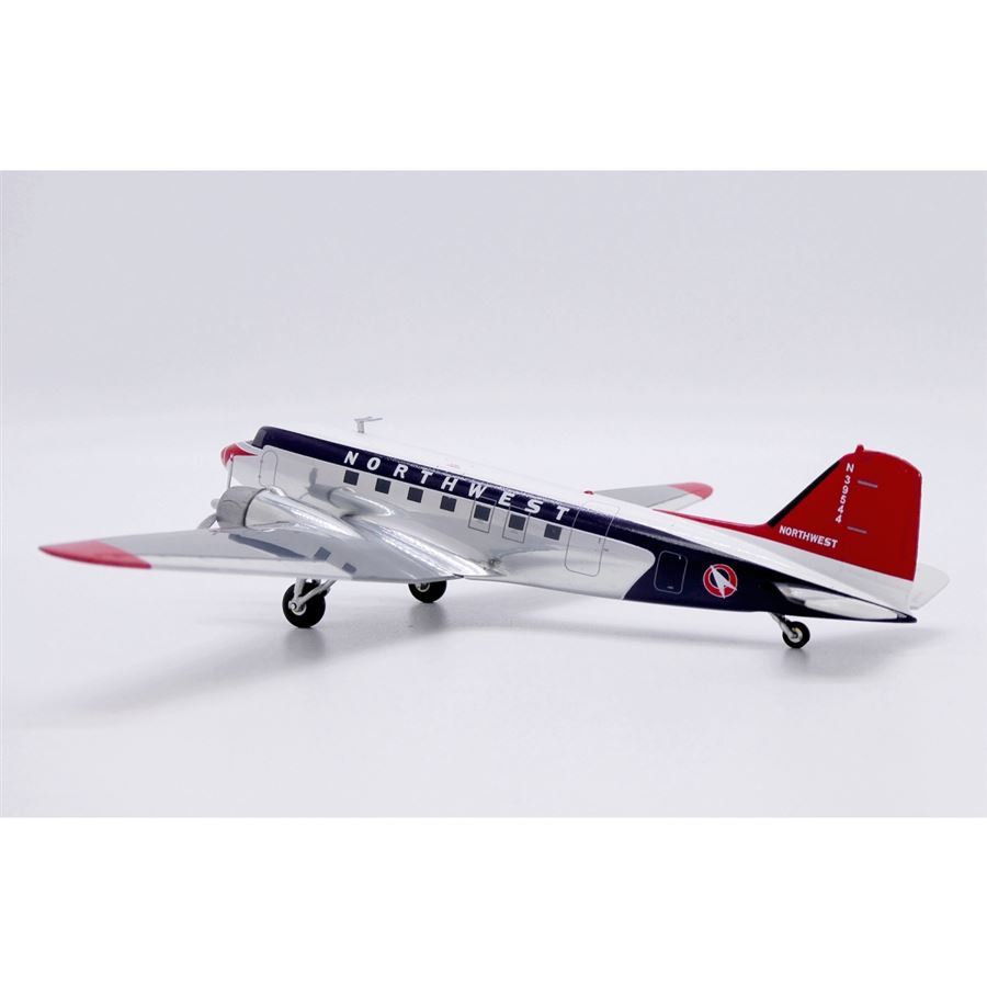 Model dopravního letadla Douglas DC-3 v barvách letecké společnosti Northwest Airlines z roku 1950 a s reg. N39544. Model se stojánkem.