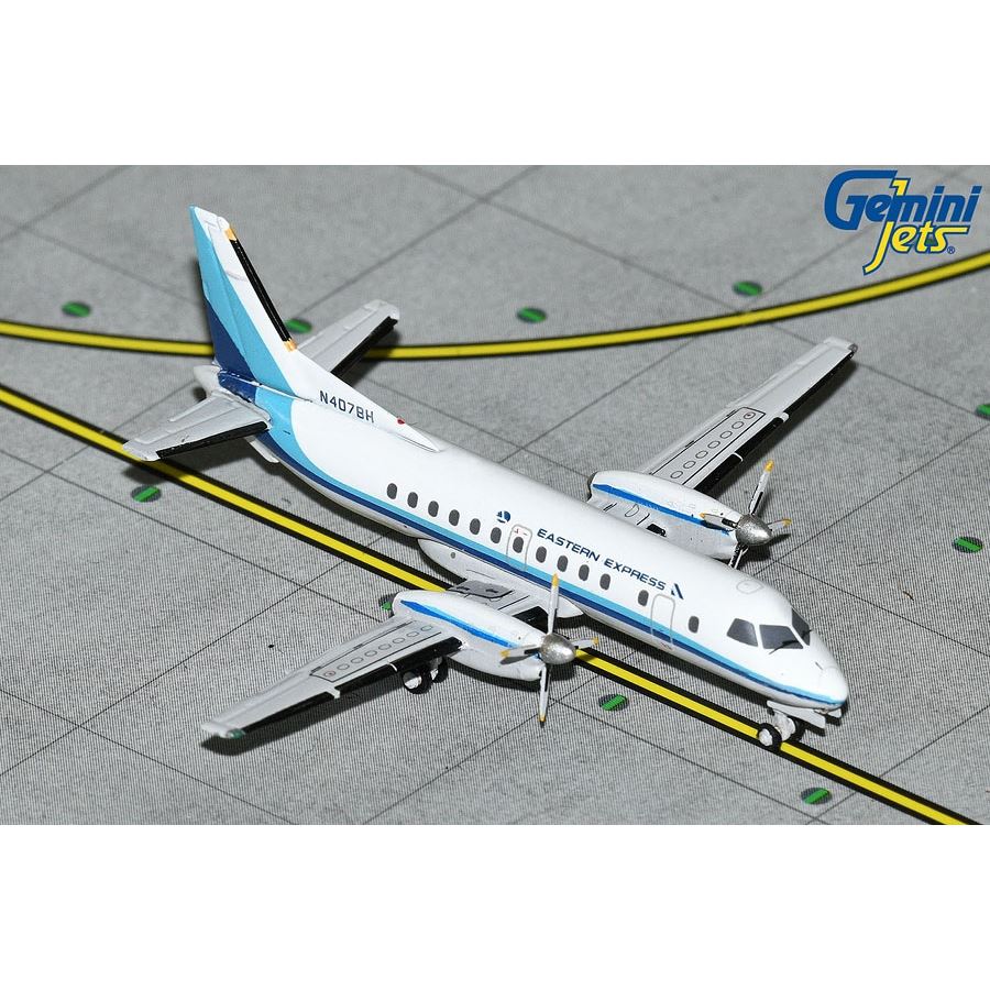 Kovový model dopravního letadla Saab 340A v barvách z roku "1980's - Hockey Stick" letecké společnosti Eastern Express a s reg. N407BH.