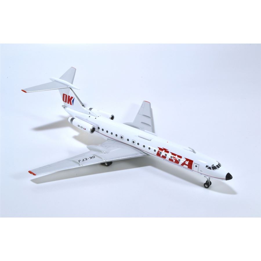 Model dopravního letadla Tupolev Tu-134A OK ČSA v barvách Československých aerolinií a s reg. OK-EFJ.Měřítko: 1:200