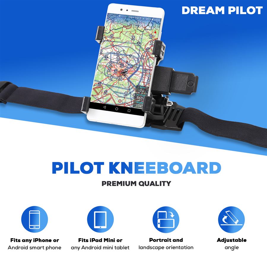 Letecké mapy a aplikace máte stále na očích. Nákoleník snadno připnete nad koleno a vložíte smartphone či tablet. Šikovná, drobná pomůcka pro piloty, která šetří prostor i peníze.