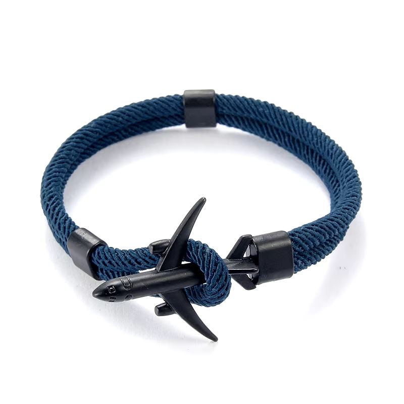 Náramek Letadlo tm. modrý/stříbrná, 21 cm