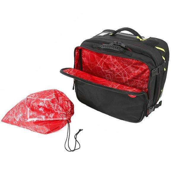 - Prostorný vnitřek na oblečení, příručky atd. s popruhem
