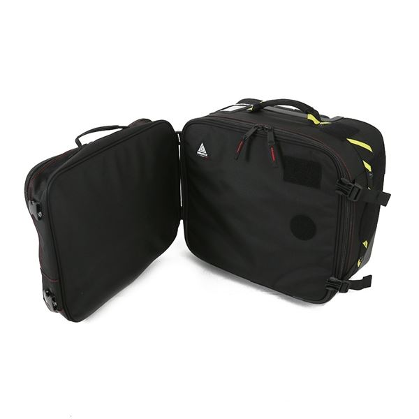 Přídavná vnější kapsa je připevněna zacvakávacími popruhy, má dvoucestný zip, plastovou rukojeť a 2 nášivky na štítky.