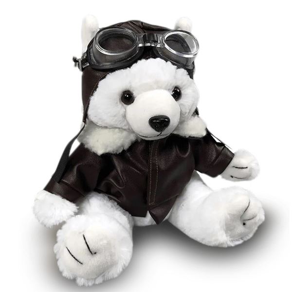Tento plyšový medvídek bude hrdinou a ko-pilotem vašeho budoucího pilota. Roztomilý plyšový medvídek s leteckými brýlemi, šálou a leteckou bundou.