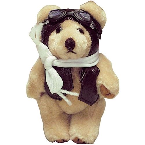 Roztomilý malý plyšový medvídek letecký pilot jako přívěsek na tašku, klíče, ... Medvídek je oblečený do pilotní vesty s šálou, má leteckou kuklu a pilotní brýle. Medvídek má ohýbatelné ruce a nohy.