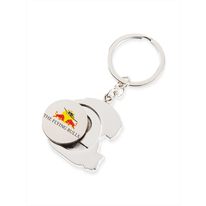Barevný přívěsek na klíče od Red Bullu obsahuje na zadní straně minci s logem Flying Bulls, kterou můžete použít, kdykoli ji potřebujete na vozík. Zároveň jde o velmi stylový přívěsek na klíče nebo na palubu letadla. Tato klíčenka byla navržená speciálně pro leteckou kolekci Flying Bulls. Perfektní dárek pro všechny milovníky letectví a Red Bullu.