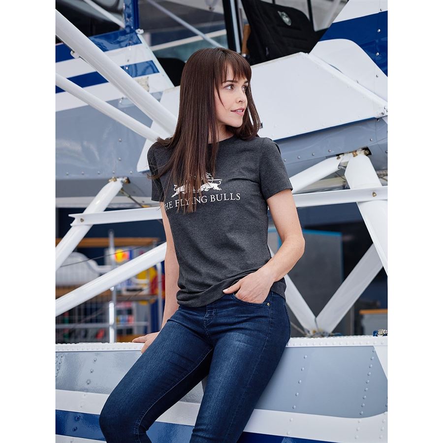 Dámské jednobarevné tričko MONO s bílým logem Flying Bulls.Materiál:51% Bavlna, 45% Polyester, 4% ElastanBarva:Tmavě šedá / antracit
