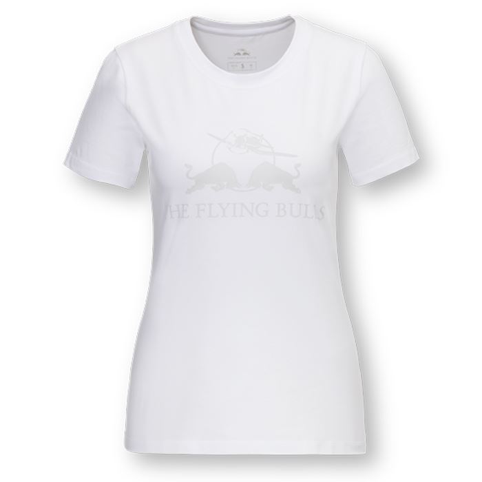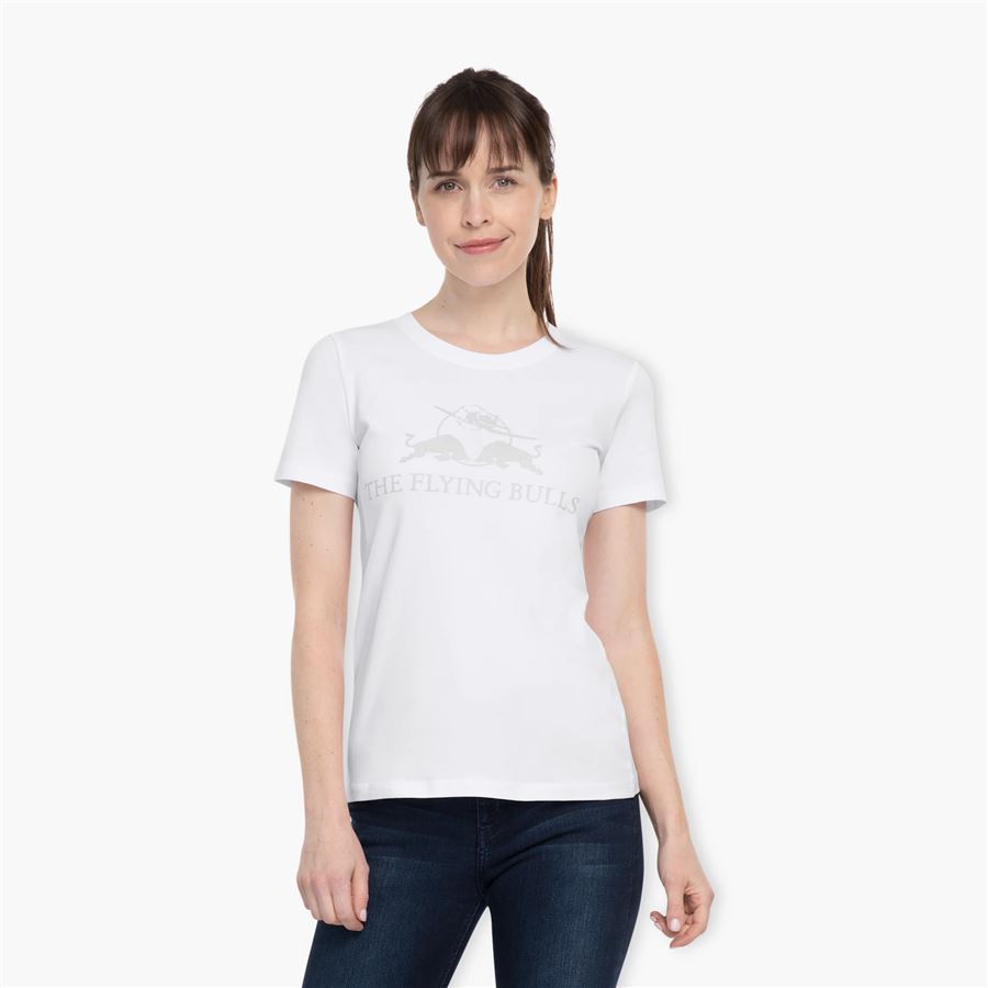 Dámské tričko TONAL s logem The Flying Bulls z nové kolekce Red Bull pro rok 2023.Materiál:95% Bavlna, 5% ElastanBarva:bílá