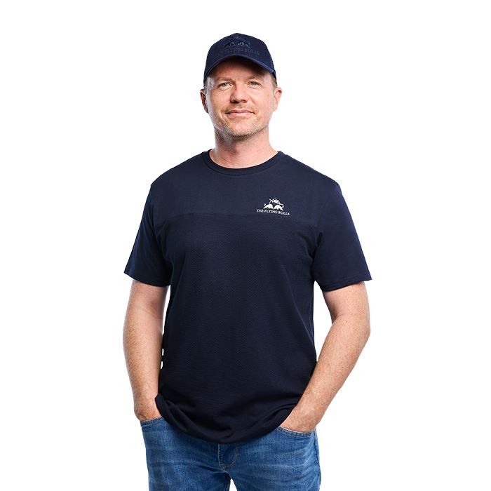 Pánské elegantní tričko nejen pro fanoušky akrobatické letecké flotily Flying Bulls. Tričko v provedení s krátkým rukávem je vyrobené ze 100% bavlny, doplněné o decentní bílé logo na prsou a je velmi pohodlné na každodenní nošení. Na vnitřní straně krku je umístěné malé logo Flying Bulls. Fanděte na Red Bull Airshow akcích stylově!