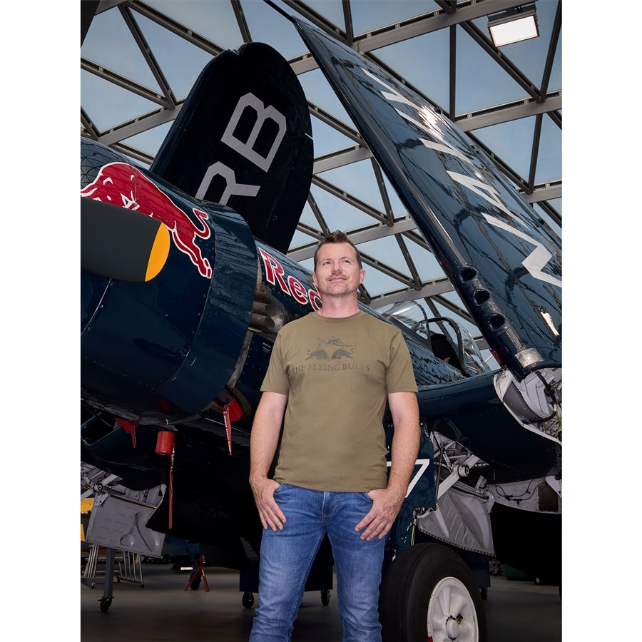 Fanděte stylově! Bez ohledu na to, které letadlo z flotily je vaše oblíbené, ukažte svou lásku k neuvěřitelným akrobatickým pilotům Flying Bulls z Hangar-7. Fanděte stylově s kvalitními tričky od Red Bullu. Tričko z nové kolekce, ve stylové khaki barvě a s logem The Flying Bulls na prsou.