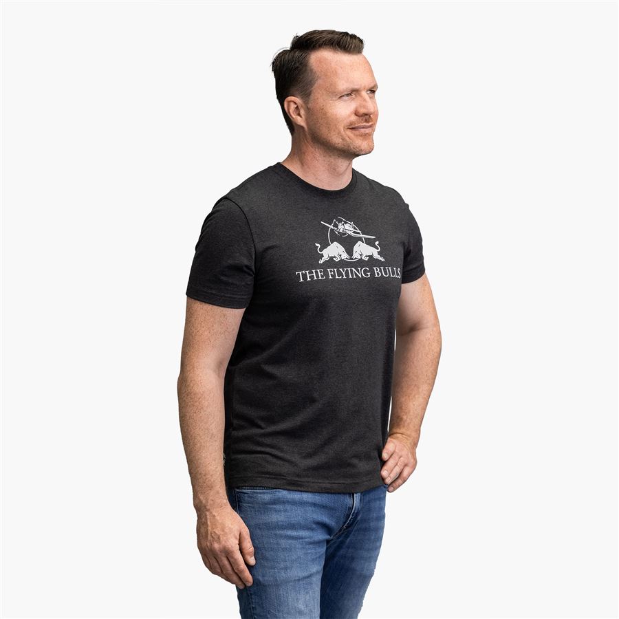 Fanděte stylově! Bez ohledu na to, které letadlo z flotily je vaše oblíbené, ukažte svou lásku k neuvěřitelným akrobatickým pilotům Flying Bulls z Hangar-7. Fanděte stylově s tímto originálním tričkem s jednobarevným logem Flying Bulls na přední straně. Tmavě šedé pánské tričko s bílým logem The Flying Bulls z letecké kolekce značky Red Bull.Materiál:56% bavlna, 40% polyester, 4% elastanBarva:tm. šedá
