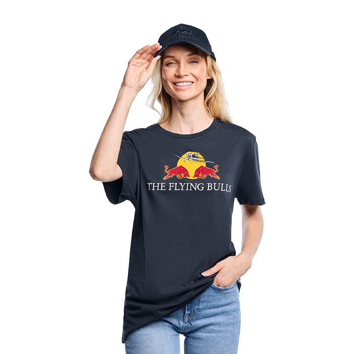 Modré unisex tričko s barevným logem The Flying Bulls z letecké kolekce značky Red Bull.Materiál:100 % bavlnaBarva:modrá - navy