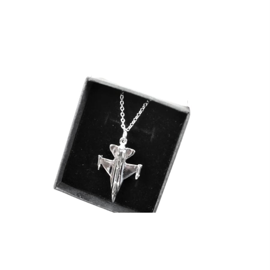 Řetízek na krk z chirurgické oceli s letounem General Dynamic F-16 Fightning Falcon. Originální dárek pro milovníky letectví. Dodáváno v dárkové krabičce.